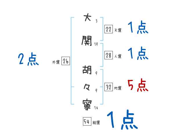 大関胡々寧さんの画数の鑑定結果