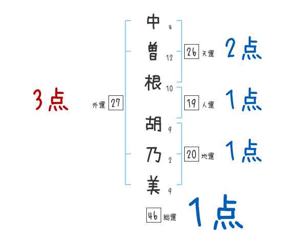 中曽根胡乃美さんの画数の鑑定結果