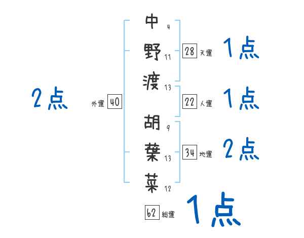 中野渡胡葉菜さんの画数の鑑定結果