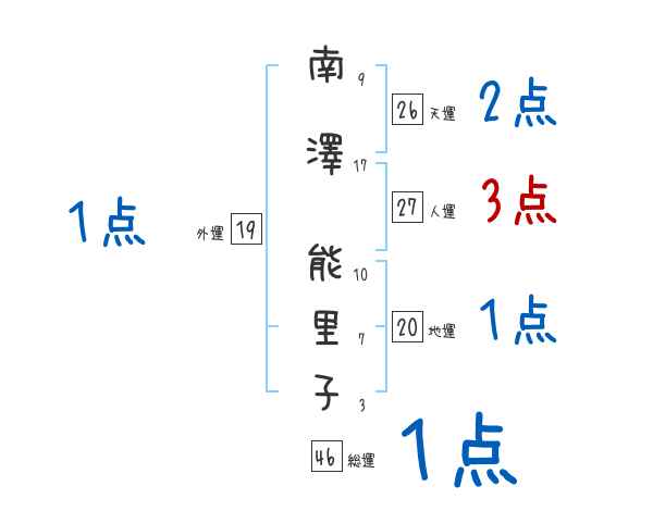南澤能里子さんの画数の鑑定結果