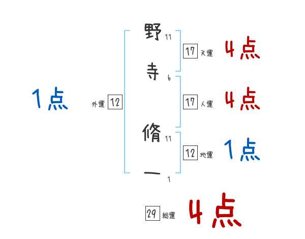 野寺脩一さんの画数の鑑定結果
