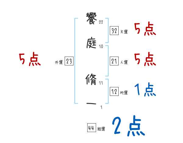 天運![]() | 饗庭脩一さんの天運は32画の5つ星!柔軟性があり成功する。チャンスが多く金運が良い。 家系が持つ宿命的な運勢を表します。祖先から受け継いだ苗字ですので自分の力が及びません。家柄を象徴します。 |