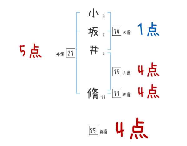 外運![]() | 小坂井脩さんの外運は21画の5つ星!統率力がある。独立し成功する。名誉を手に入れる。 生活面を象徴する運勢です。外部から受ける影響力を表し、結婚運、家庭運や職場、環境への順応性を表します。 |