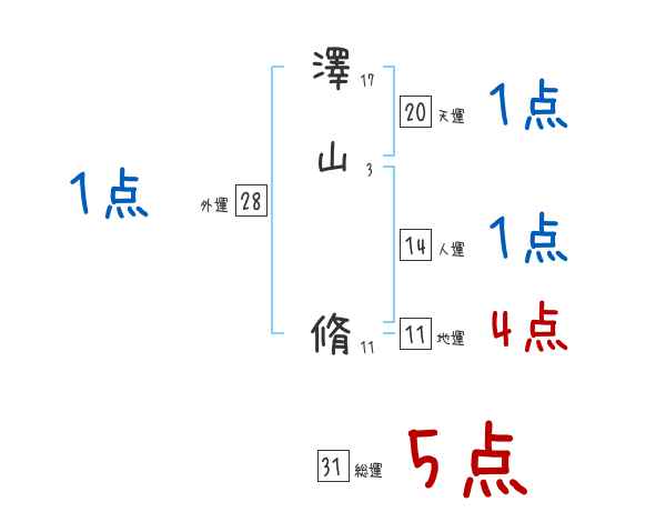 澤山脩さんの画数の鑑定結果