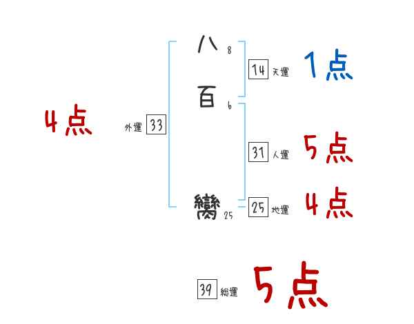 八百臠さんの画数の鑑定結果