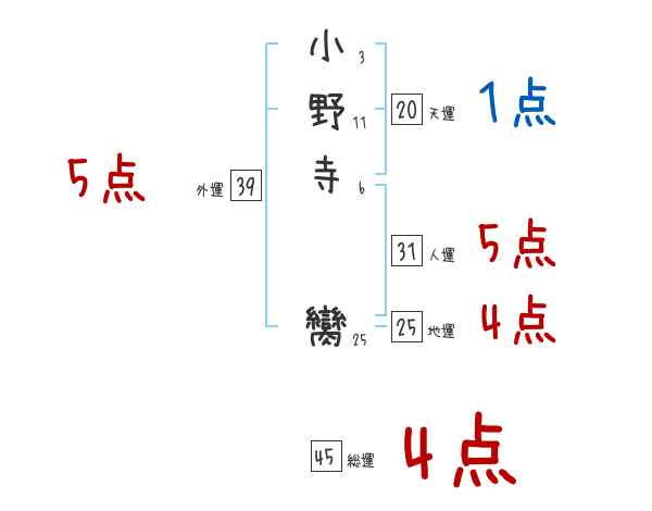 小野寺臠さんの画数の鑑定結果