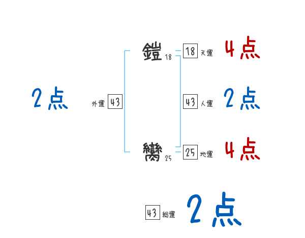 鎧臠さんの画数の鑑定結果