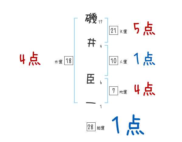 天運![]() | 磯井臣一さんの天運は21画の5つ星!統率力がある。独立し成功する。名誉を手に入れる。 家系が持つ宿命的な運勢を表します。祖先から受け継いだ苗字ですので自分の力が及びません。家柄を象徴します。 |