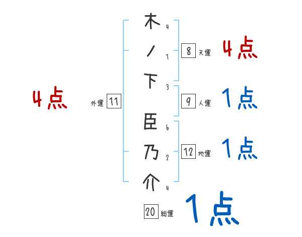 天運![]() | 木ノ下臣乃介さんの天運は8画の4つ星!勤勉家。根気強く努力し成功する。忍耐力がある。 家系が持つ宿命的な運勢を表します。祖先から受け継いだ苗字ですので自分の力が及びません。家柄を象徴します。 |