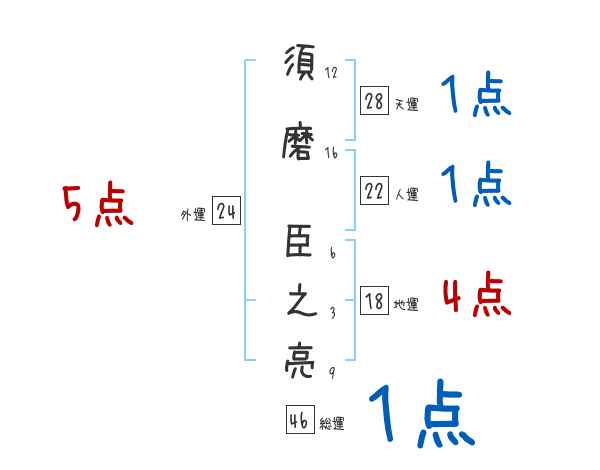 須磨臣之亮さんの画数の鑑定結果