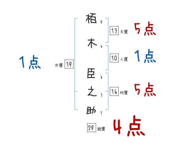 天運![]() | 栢木臣之助さんの天運は13画の5つ星!才能に恵まれ人気がある。名声を手に入れる。円満な人生。 家系が持つ宿命的な運勢を表します。祖先から受け継いだ苗字ですので自分の力が及びません。家柄を象徴します。 |