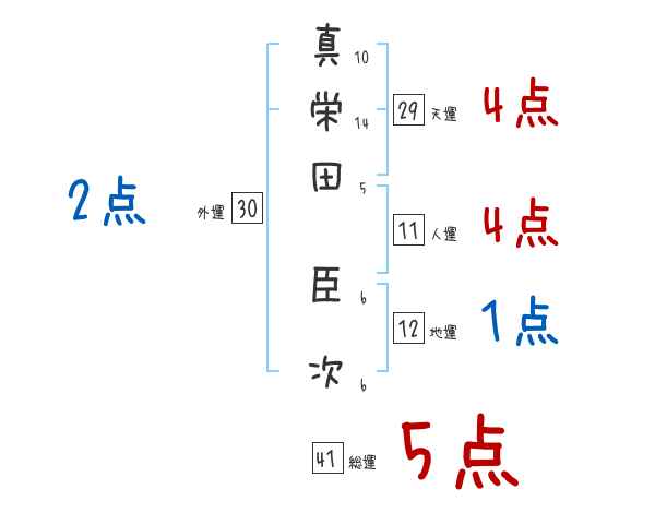 天運![]() | 真栄田臣次さんの天運は29画の4つ星!完全主義で才能がある。厳格な心の持ち主。 家系が持つ宿命的な運勢を表します。祖先から受け継いだ苗字ですので自分の力が及びません。家柄を象徴します。 |
