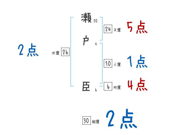 瀬戸臣さんの画数の鑑定結果