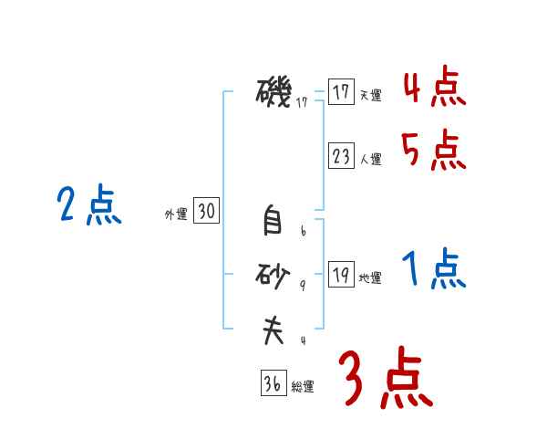 磯自砂夫さんの画数の鑑定結果