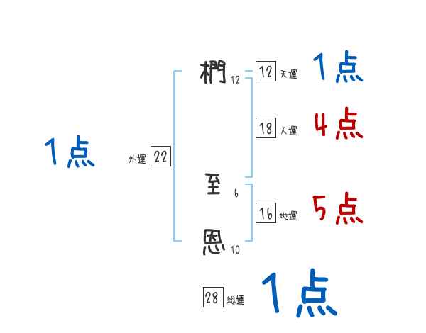 椚至恩さんの画数の鑑定結果