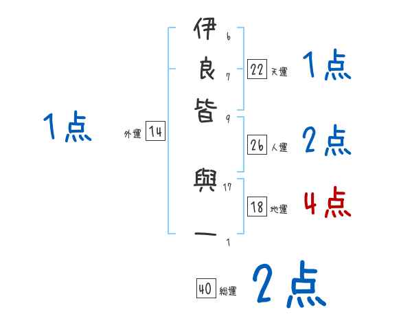 天運![]() | 伊良皆與一さんの天運は22画の1つ星!努力することが苦手ないっぽう手先が器用。芸術性にも優れる。 家系が持つ宿命的な運勢を表します。祖先から受け継いだ苗字ですので自分の力が及びません。家柄を象徴します。 |