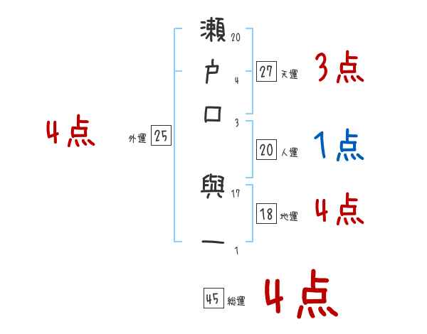 天運![]() | 瀬戸口與一さんの天運は27画の3つ星!頭脳明晰だが強情で摩擦が多い傾向。孤立に注意。 家系が持つ宿命的な運勢を表します。祖先から受け継いだ苗字ですので自分の力が及びません。家柄を象徴します。 |