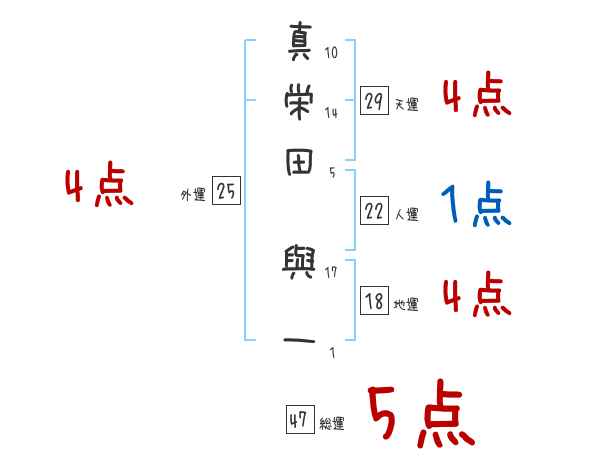 総運![]() | 真栄田與一さんの総運は47画の5つ星!実力が開花し発展する円満な人生。財に恵まれる。 あなたの人生を表す1番重要な運勢です。生涯を通じて影響する総合運となり、主に50歳以降の晩年期に影響を及ぼします。 |
