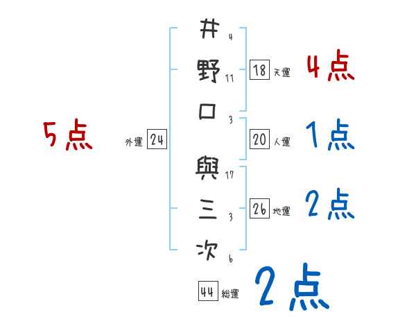 井野口與三次さんの画数の鑑定結果