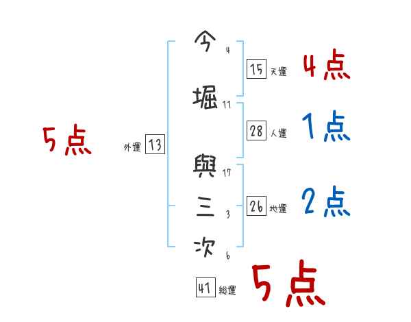今堀與三次さんの画数の鑑定結果