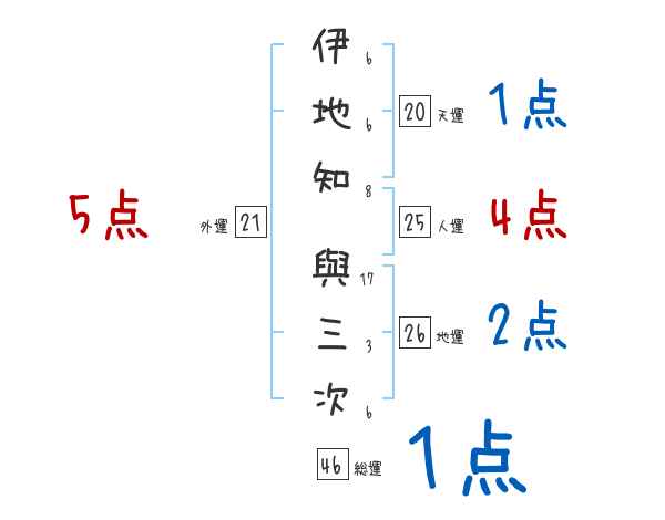 外運![]() | 伊地知與三次さんの外運は21画の5つ星!統率力がある。独立し成功する。名誉を手に入れる。 生活面を象徴する運勢です。外部から受ける影響力を表し、結婚運、家庭運や職場、環境への順応性を表します。 |