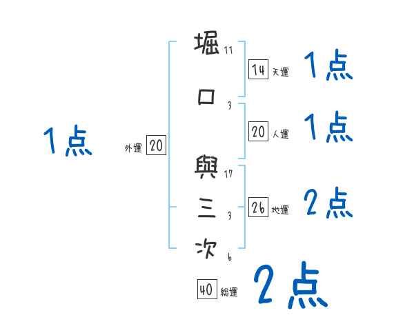堀口與三次さんの画数の鑑定結果