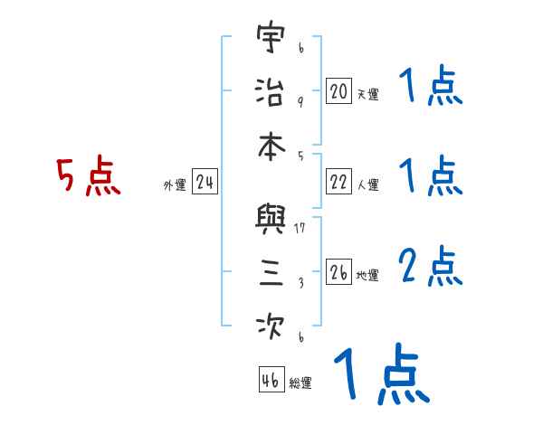 宇治本與三次さんの画数の鑑定結果