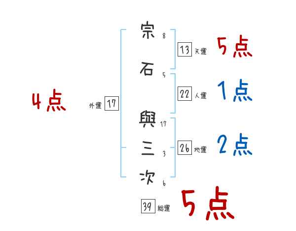 宗石與三次さんの画数の鑑定結果