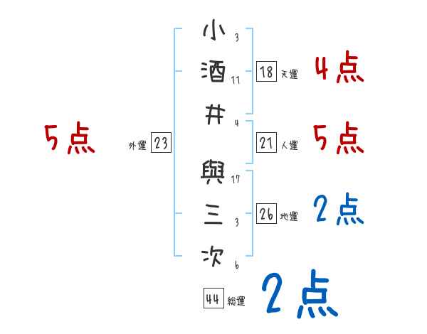 小酒井與三次さんの画数の鑑定結果