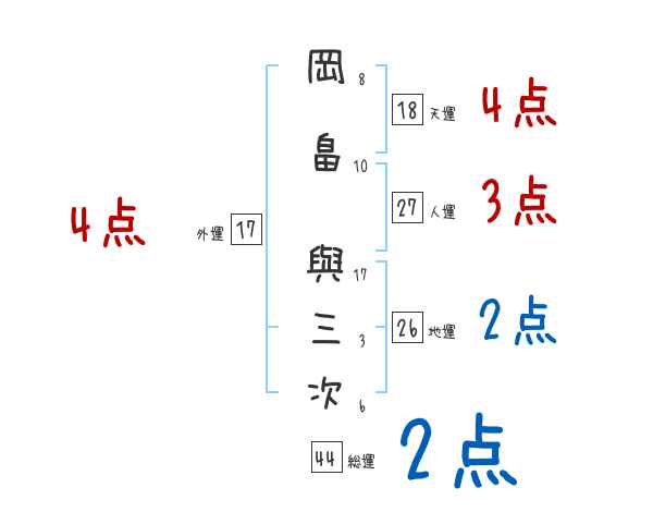 家系が持つ宿命的な運勢を表します。祖先から受け継いだ苗字ですので自分の力が及びません。家柄を象徴します。