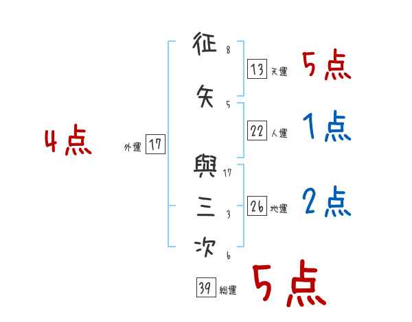 征矢與三次さんの画数の鑑定結果