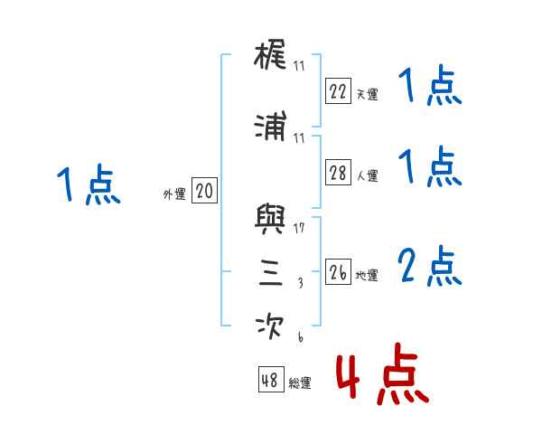 梶浦與三次さんの画数の鑑定結果