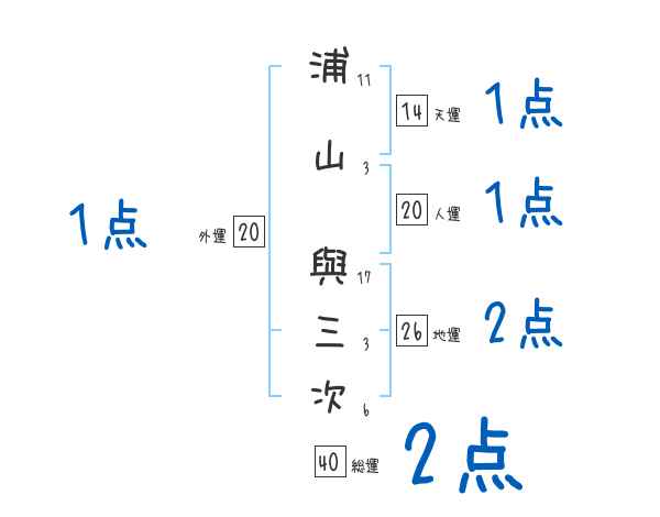 浦山與三次さんの画数の鑑定結果