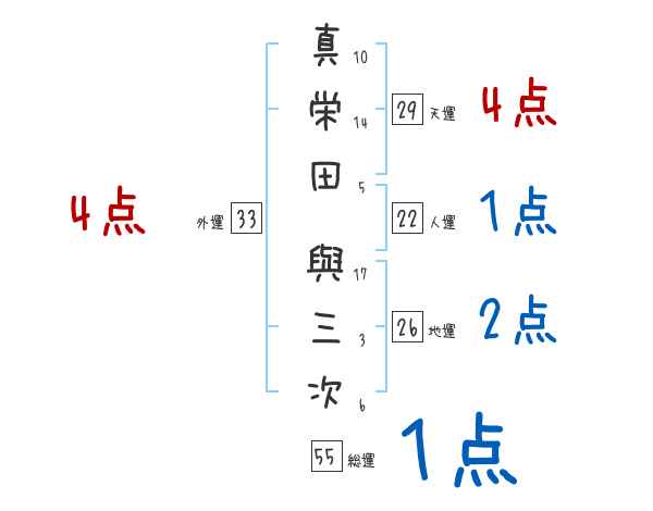 真栄田與三次さんの画数の鑑定結果