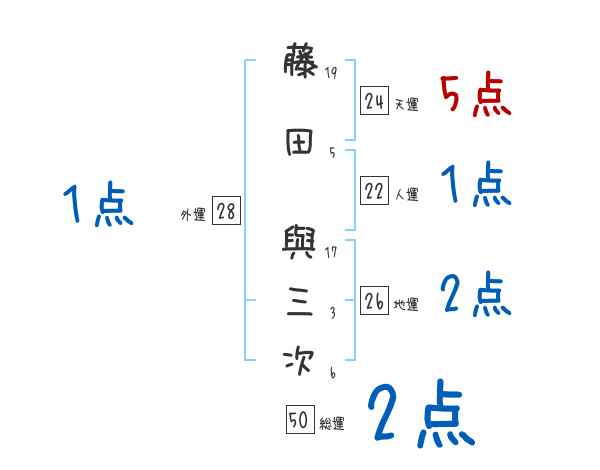 藤田與三次さんの画数の鑑定結果