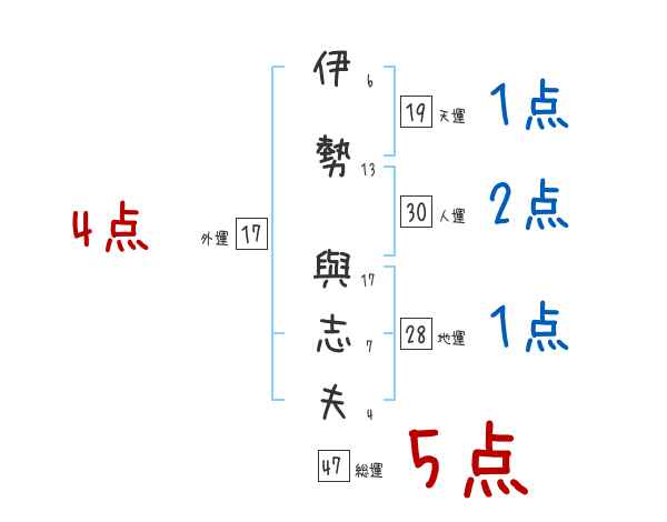 外運![]() | 伊勢與志夫さんの外運は17画の4つ星!積極的な行動力。地位を気づき財産を手に入れる。純粋な心と直感力。 生活面を象徴する運勢です。外部から受ける影響力を表し、結婚運、家庭運や職場、環境への順応性を表します。 |