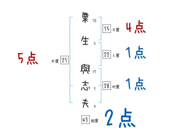 栗生與志夫さんの画数の鑑定結果