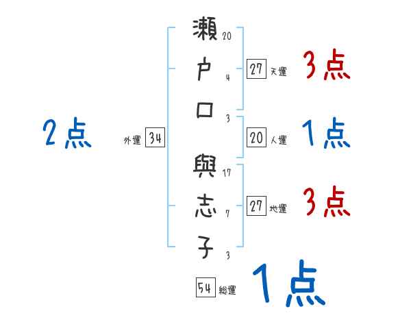 瀬戸口與志子さんの画数の鑑定結果