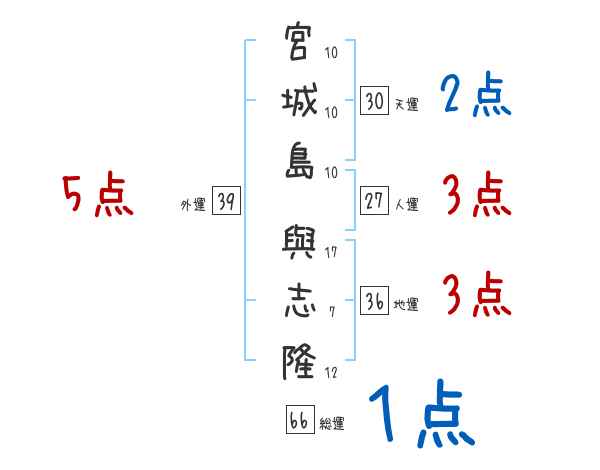 宮城島與志隆さんの画数の鑑定結果