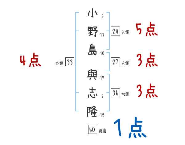 小野島與志隆さんの画数の鑑定結果