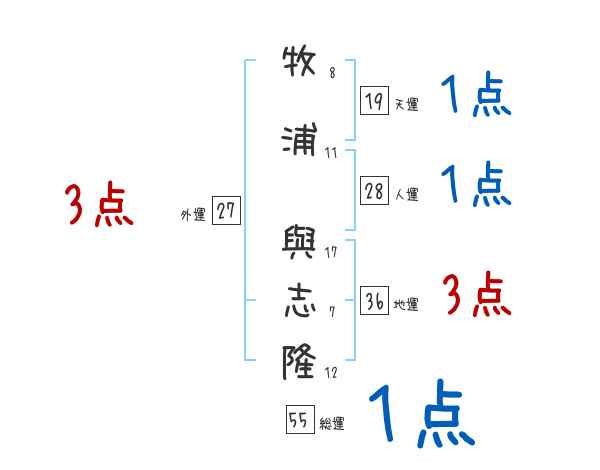 家系が持つ宿命的な運勢を表します。祖先から受け継いだ苗字ですので自分の力が及びません。家柄を象徴します。