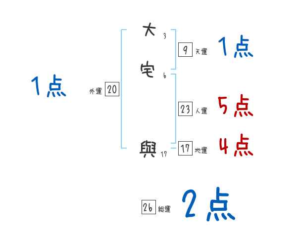 大宅與さんの画数の鑑定結果