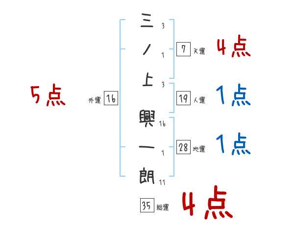 三ノ上興一朗さんの画数の鑑定結果