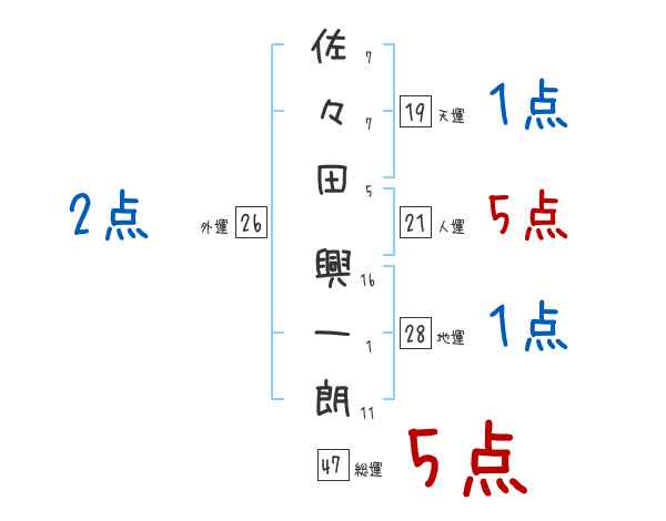 佐々田興一朗さんの画数の鑑定結果