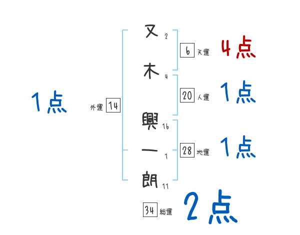 又木興一朗さんの画数の鑑定結果