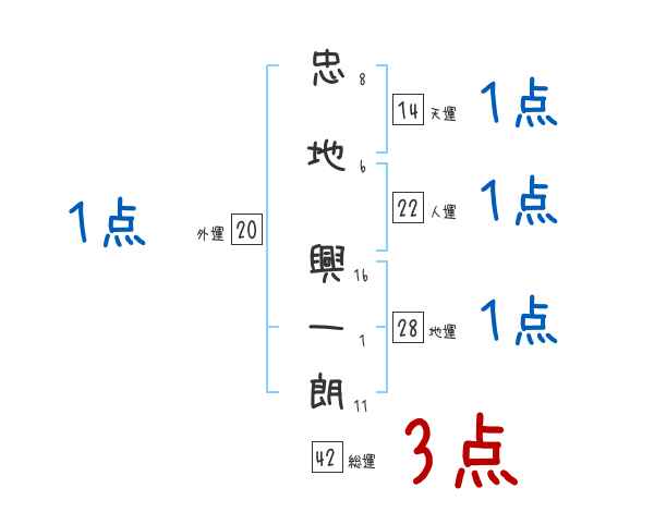忠地興一朗さんの画数の鑑定結果