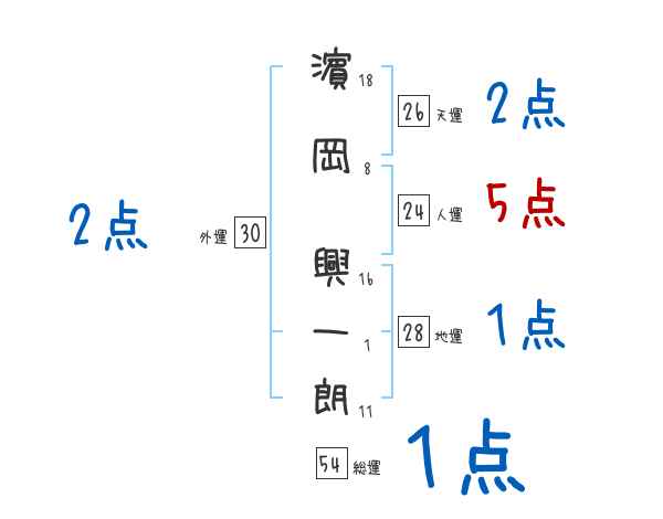 濵岡興一朗さんの画数の鑑定結果