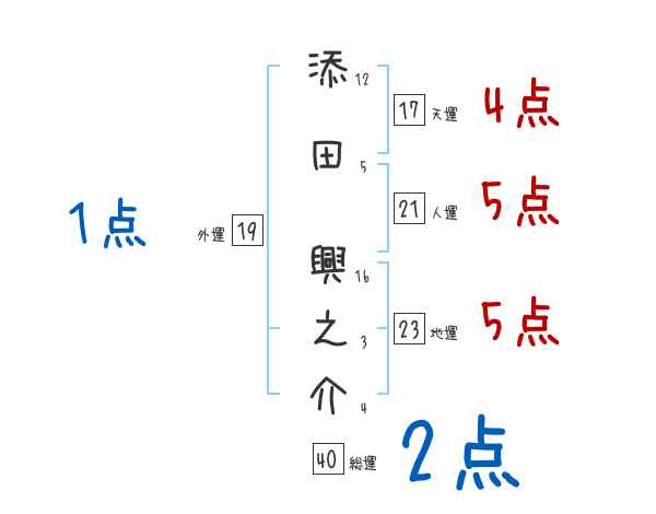 添田興之介さんの画数の鑑定結果