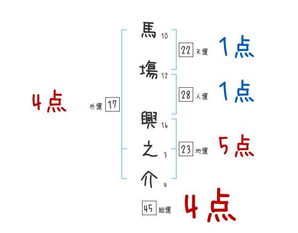 馬塲興之介さんの画数の鑑定結果