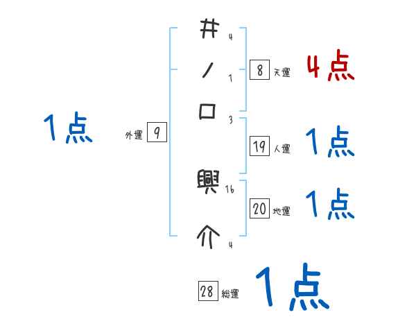 総運![]() | 井ノ口興介さんの総運は28画の1つ星!家庭環境に注意。スポーツで活躍できる能力があるかも。 あなたの人生を表す1番重要な運勢です。生涯を通じて影響する総合運となり、主に50歳以降の晩年期に影響を及ぼします。 |